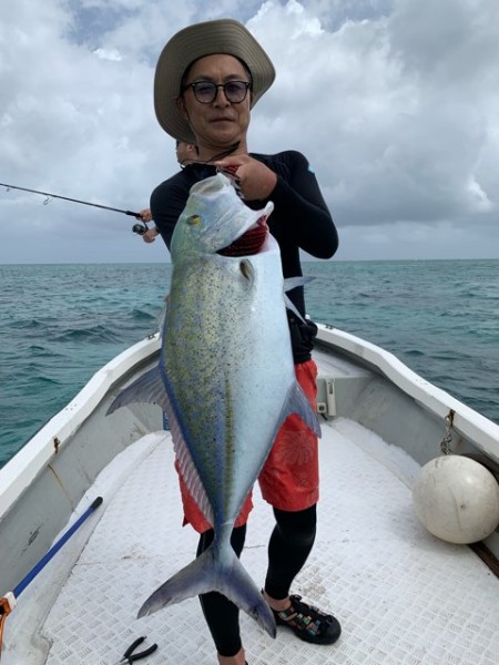 ちょこっとMTで鯵を狙って頂きますと工藤様のロッドが大きく弧を描き水面に姿を見せてくれたのは グッドルッキングなカスミアジアジ。