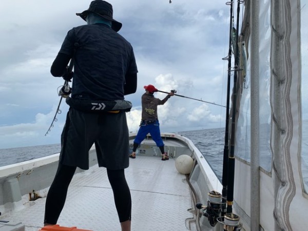 お宿にお迎えに上がると空から雷鳴が聞こえ始め 相談の結果 様子を見ながらGTを狙って頂く事となりマリーナを出港に。