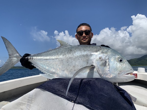 マリーナを出港しキャストを繰り返して頂くもダツミサイルすら飛ばない厳しい状況でしたが ついに内村様のルアーに水柱が上がり弧を描くロッド。