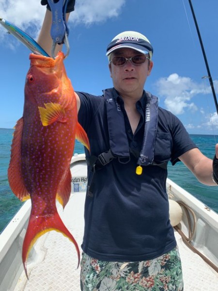 新調されたロッドでカスミアジを釣り上げて頂こうとご案内をしておりますが なかなか姿を見せてくれず…。