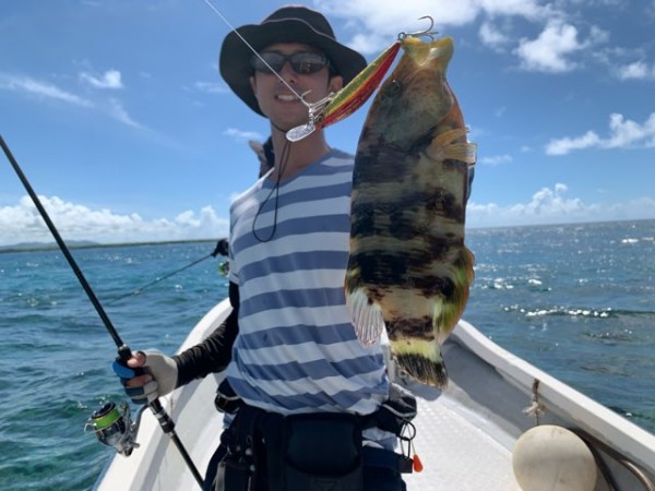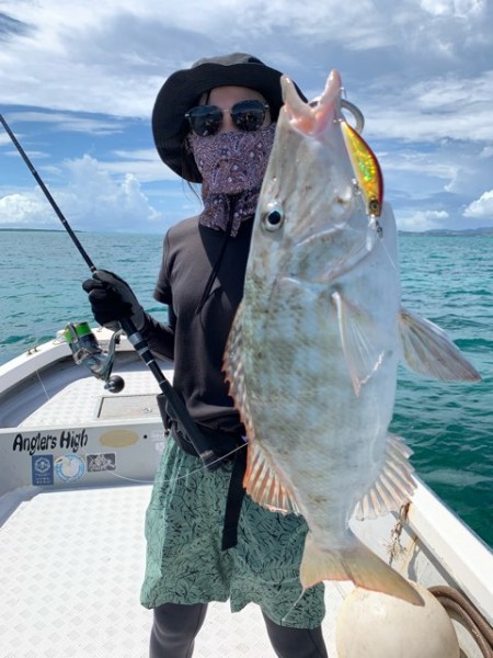 汐が変わり午前中の勢いは無くなったものの奥様にグッドサイズのキツネフエフキがヒット!。