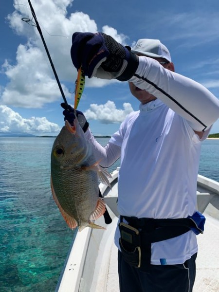 コロナで内容をボカそうと思いましたが 鏡の様な水面にルアーを投げ続けて頂き最終最後まで頑張って頂きましたが イソフエフキだけ…。