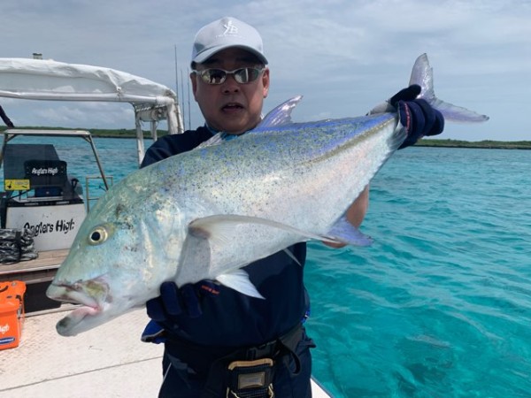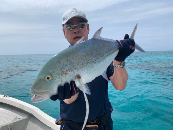 くちびる君を挟み上田様のロッドを絞るカスミアジ ボート側までチェイスするカスミアジ に最終日は鯵祭りだ!と胸を撫で下ろしたのですが上げ止まりからのゴールデンタイムを過ぎると鯵どころかその他の魚達の反応が無くなり…。