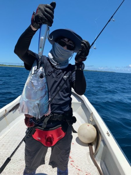 キハダマグロを釣り上げて頂けたものの そのマグロのナブラの周りには何匹ものサメがうろつき ヒットする度に犠牲者が出る厳しい状況…。