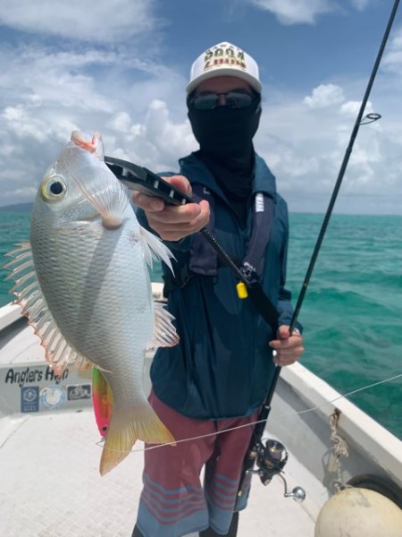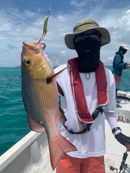 ナンヨウカイワリをキャッチされてから八重山の魚達のクセをとらえたのか アカナーをサイズアップやタマンのエリアでロッドがL字型に曲がりドラグが泣き叫ぶ場面が二度。