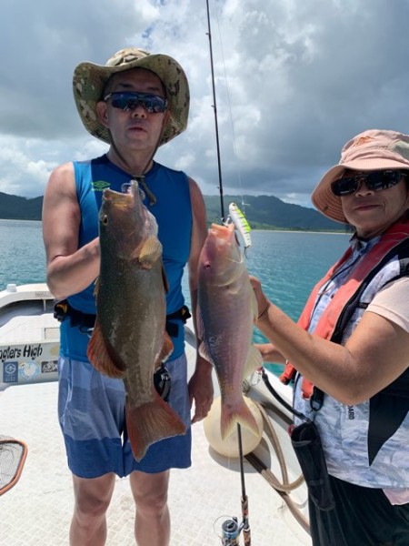 しかし お二人は手を替え品を替え魚達を誘惑し続け ポツポツではあるもののロッドを曲げて頂く事に。