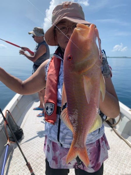 全く反応が無く すがる思いでオモリ釣りをして頂くと 奥様にオジ様がヒット!。