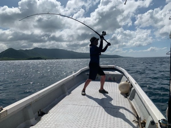 流れと気分を変えて頂くため 珊瑚礁の上に上がりライトゲームをお楽しみ頂く算段でしたが コツコツとアタリは有るものの ロッドを絞り込むアタリは無く目の前が真っ白に…。