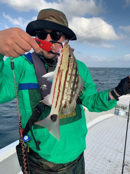 すると 『あっ きた!』と早川様 すると ラインの先にぶら下っていたのはアメリカ『良かった… 坊主は免れた』と ホッとされる早川様。