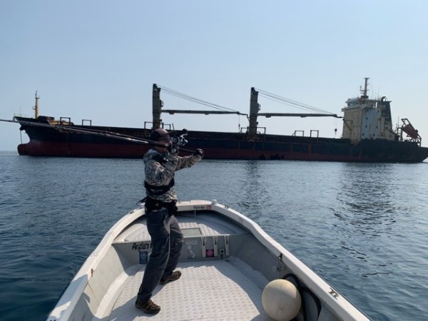 穴が開いてしまったこの大きな貨物船 ここままにされるのではないかと心配です