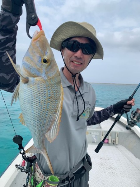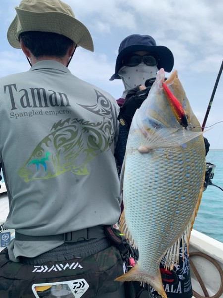 裏メニューとは大袈裟でMTゲームでご案内致しますエリアまで足を伸ばしてタマンがひそむであろうポイントを狙うのですが 午前中はレギュラーメンバー達がお二人のロッドを曲げてくれるだけ…