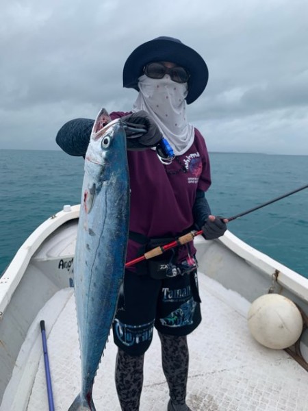 最終盤 汐止まりを迎えると少しではあるもののボートのドリフト速度が上がると祭りとは言えないものの奥様にイケガツオやアオチビキを含めたレギュラーメンバーがお二人に