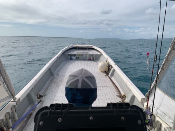ボートでフォローし珊瑚礁から引き離そうとするも 無念のラインブレーク…