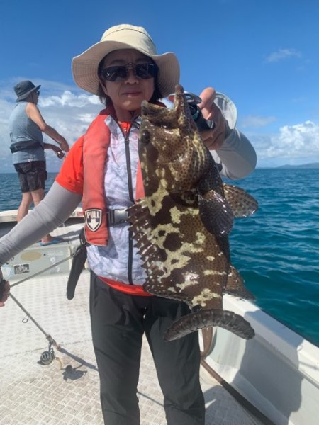 その後ドリフト速度が遅く厳しい釣りが続くも時よりグッドサイズの魚達が顔を見せてくれる中 菅原様のロッドが大きく弧を描き 姿を見せてくれたのはグッドサイズのタマン
