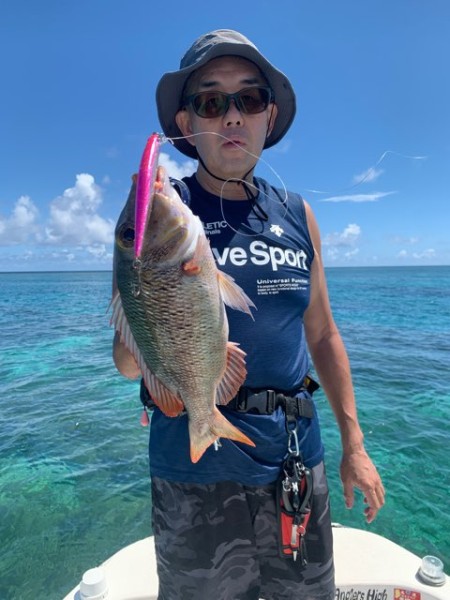その厳しい条件下 勝手知ったる八重山の海 バラハタやイソフエフキなどを釣り上げていただくも 狙いのタマンは…