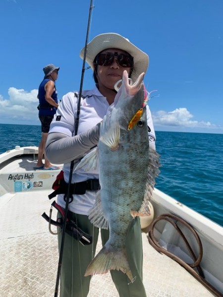 その後も様々なフエフキ達がお二人のロッドを曲げ 狙いのタマンがいつ現れるかと期待しておりましたが 潮流が変わりボートのドリフト速度が…