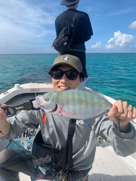 開始早々 高久様にナンヨウカイワリがヒットし上々のスタートに本日は良い釣りをしていただけそうだと一安心するの そのタイミングは早朝の潮代わりからのゴールデンタイムの終わり間際