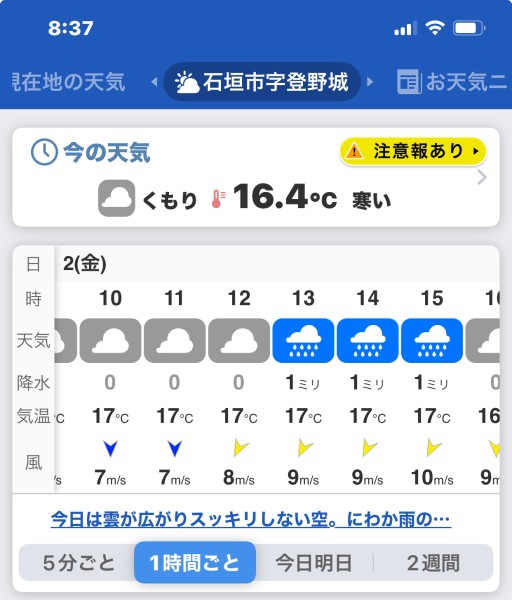 昼から大時化の予報…