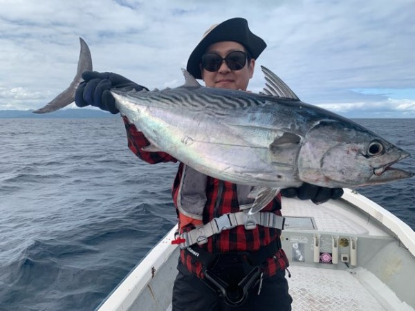 しかし 鯵を期待しましたがスルスルと巻き取られるライン ネットを持ち待ち構えておりますと ラインの先には 大好物のスマ!