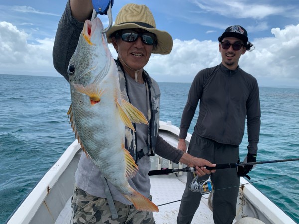 午後になると風の勢いが少々増してボートがドリフトしだすと山口様に魚達が姿を見せはじめるも ゲストの磯様は根に潜られ苦戦…。