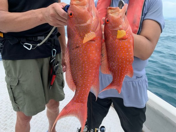 風と潮が喧嘩しボートが流れない厳しい条件下 次々と魚達を釣り上げて頂いておりますが 未だにタマンは…。