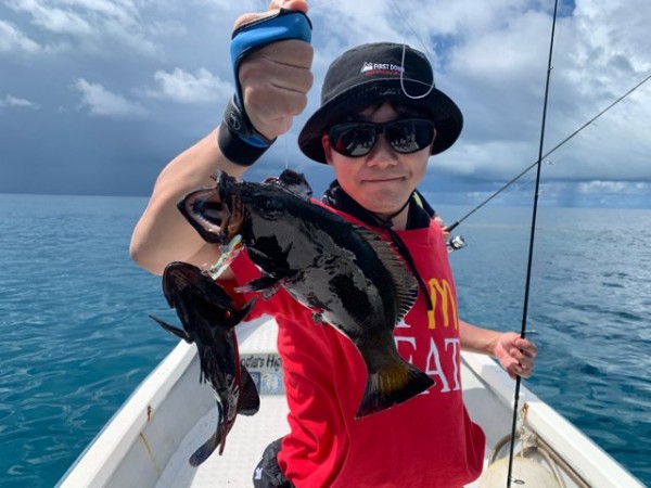 風が無く ボートが流れないため 竿を持ち替えて頂き狙いを変更。