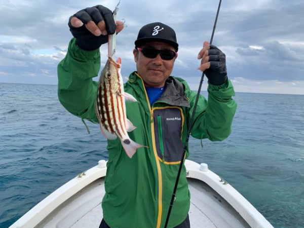 その後キャストを繰り返して頂いておりますと 今度は渡辺様のルアーにまとわり付く何者かがバイトするも…。