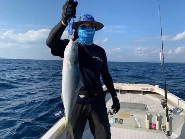 長い沈黙と水面を破り 齋藤様のルアーに食らい付き姿を見せてくれたのは アジではなくツムブリ…。