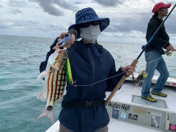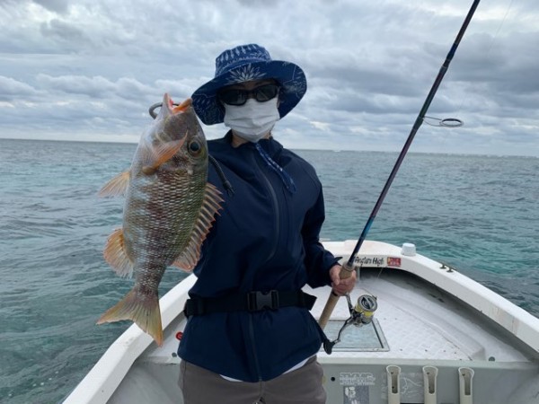入れ食いにはほど遠いものの 奥様には順調に魚達を釣り上げて頂いておりますが トップにこだわる大城戸様には…。
