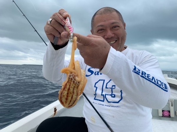 そんな中 流石 石垣島の烏賊大王 タコを始めにバラハタなどを釣り上げて頂きましたが 本命のアオリイカは一杯のみ…。