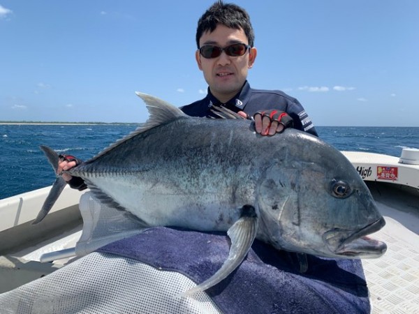 出港時から 今日はGT日和です!と大見得を切りマリーナを出て数ヶ所目 金野様のルアーにGTらしきバイトが!。