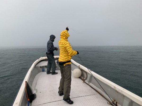 盛り上がる船上 釣を楽しんで頂ける残り時間は30分 コースを変えてもう一流と言う所で再び叩き付ける雨 それと共に雷鳴が四方で鳴り響き 岩崎様 ご夫妻の安全を考え無念の帰港に。