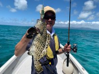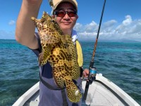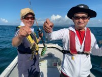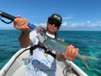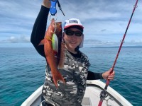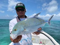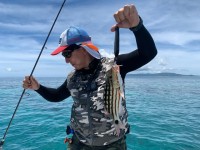 お祭り騒ぎとまでは行かないものの ベタ凪地獄の初日に比べると天と地の差。good sizeのキツネフエフキを上間様が釣り上げ その勢いでトップを引きずって頂いているとそのルアーをチィエースするロウニンアジら...