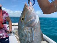 帰港時間となり『ラスト 5投です』と声を掛けようとすると 『何だこれ! デカイかも?』とS様の声。タマン様に新調されたフィッシャーマンのロッドは綺麗に弧を描き 大タマンの期待が!。しかし姿を見せてくれ...