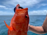 濱口様 毎度ご乗船ありがとうございます。ファーストフィッシュを上げて頂き 話し込んでおりますと殺気が消えたのか? 強烈なドラグ音。ボートでフォローするものの…。相手が悪過ぎた様ですが 盛り上がってま...