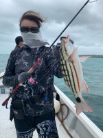 2日目は風は文句無しの強さで昨日の分もお楽しみ頂こうとマリーナを出港エリアに到着しキャストを始めて頂くと岩崎様にイソフエフキやアカジンが続けてヒットするもその後が続かず…この日は大潮でシャローに入れ...
