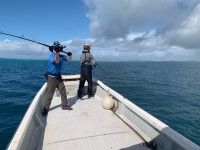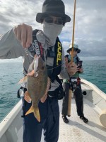 相澤様 毎度ご乗船ありがとうございます。前日の天気予報は雨 でしたが 出港時は陽射しが強く真夏を思わせる暑さ。珊瑚礁の魚達と遊んでもらうためマリーナを出港しエリアへ到着して早々 お二人のルアーに魚達が...