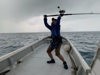 三木様 辻本様 ご乗船頂きありがとうございます。鯵を狙い出港しましたが反応が無く大きくエリアを移動。キャストを繰り返して頂いていると水柱が上がらないのに辻本様のロッドが大きく弧を描き 鳴き出すドラグ...