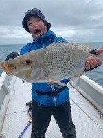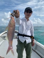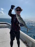 永嶌様 2日目のご乗船ありがとうございます。前日までの風が治まり初日のご案内をスタート致しましたが 嘘の様に風が無くなり恐怖のベタ凪地獄に…。スタート直後 永嶌様のロッドが大きく弧を描き泣き出すドラグ...