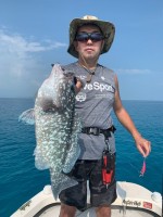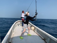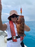午後になり下げ汐に変わるとおりからの強い風と潮流が同調しボートのドリフト速度は秒速1mを超え難しい海況に…。しかし ご夫妻は臨機応変に対処し魚達にコンタクトしロッドは弧を描くも 早いドリフト速度にライン...