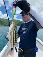 午前中はアメリカが入れ替わり立ち替わり姿を見せてくれたので午後からは 違うメンバー達の顔を見て頂くためにエリアを移動。汐が変わり午前中の勢いは無くなったものの奥様にグッドサイズのキツネフエフキがヒッ...