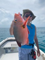 2日目も開始早々からラッシュ!前日に比べ風が有りボートが流れ 心持ち涼しいく感じられる海。Miss X様は次から次に 涼しい顔で魚達を釣り上げ なかなか釣果情報をアップさせてくれない勢い!