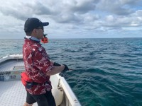 マリーナで出港準備をしている時は豪雨でご案内をキャンセルか…と思っておりましたが雨は小降りとなり エリアに到着すると薄陽が差しキャストを始めて頂く事に。すると一投目から岩崎様にヒット! 間もなく奥様...