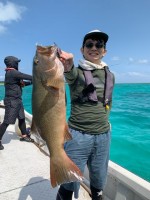 出遅れの感が有った斉藤様に起死回生の1匹が。小原様がグッドプロポーションのアカジンをキャッチされると間髪入れずに弧を描く斉藤様のロッド。ネットに収まったのはこれまたグッドプロポーションのタマン。