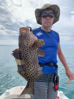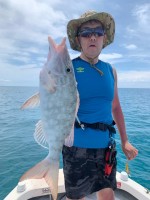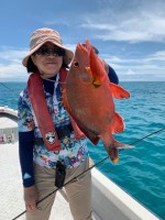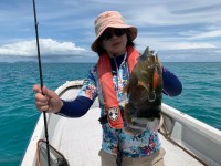 時間が経つにつれさらにご機嫌が斜めになる魚達でしたが 奥様のツキは離れる事なくポツポツでは有るもののロッドを曲げキャッチ。一方のは菅原様はツキが離れてしまったか? 珊瑚礁に潜られたり ボート側でフック...