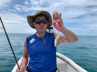 『アカジンしか釣れない…』の奥様のボヤキが釣神様に聞かれて逆鱗に触れてしまったか その後はパッタリとアタリが消えてしまい…。帰港時間までルアーを投げ倒して頂きましたが狙いのタマンやアカジンは姿を見せず...