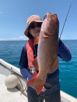 『アカジンしか釣れない…』の奥様のボヤキが釣神様に聞かれて逆鱗に触れてしまったか その後はパッタリとアタリが消えてしまい…。帰港時間までルアーを投げ倒して頂きましたが狙いのタマンやアカジンは姿を見せず...