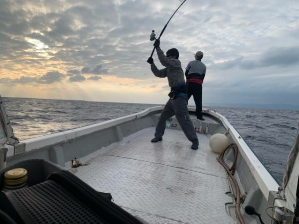 中山様のルアーの後方にGTやバショウカジキの幻が現れるも水柱を上げる事なく姿を消す 悔しい場面が有り時その後はダツミサイの猛攻撃を受け 気付けば帰港時間