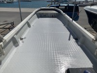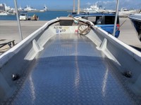 補強に使用したアルミ縞板に遮熱塗料を塗装すると期待以上にデッキの温度が下がり裸足でもOKの状況に驚く程。みよしに取り付け予定のアルミハッチの到着が間に合わず、新コロ休み明け1発目のご案内となる中村様に...